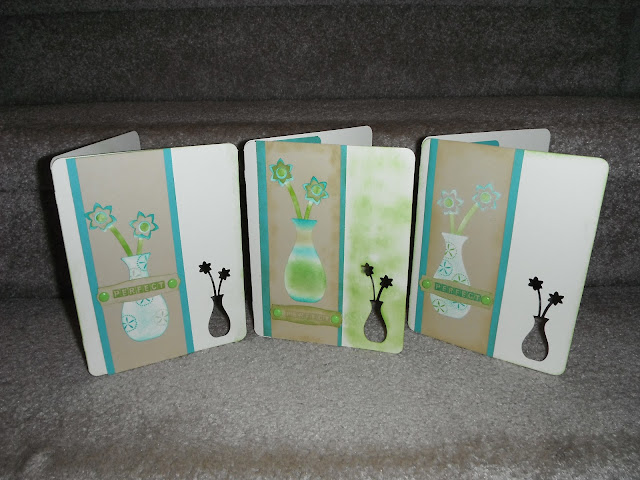 Using my Cricut machine and Close To My Heart's Cricut Art Philosophy Cartridge we also created some cards using the card function on the cartridge to create these vase cards. Pear, lagoon and bamboo colours were used and the "PERFECT" stamp is from the July Stamp of the Month set.
